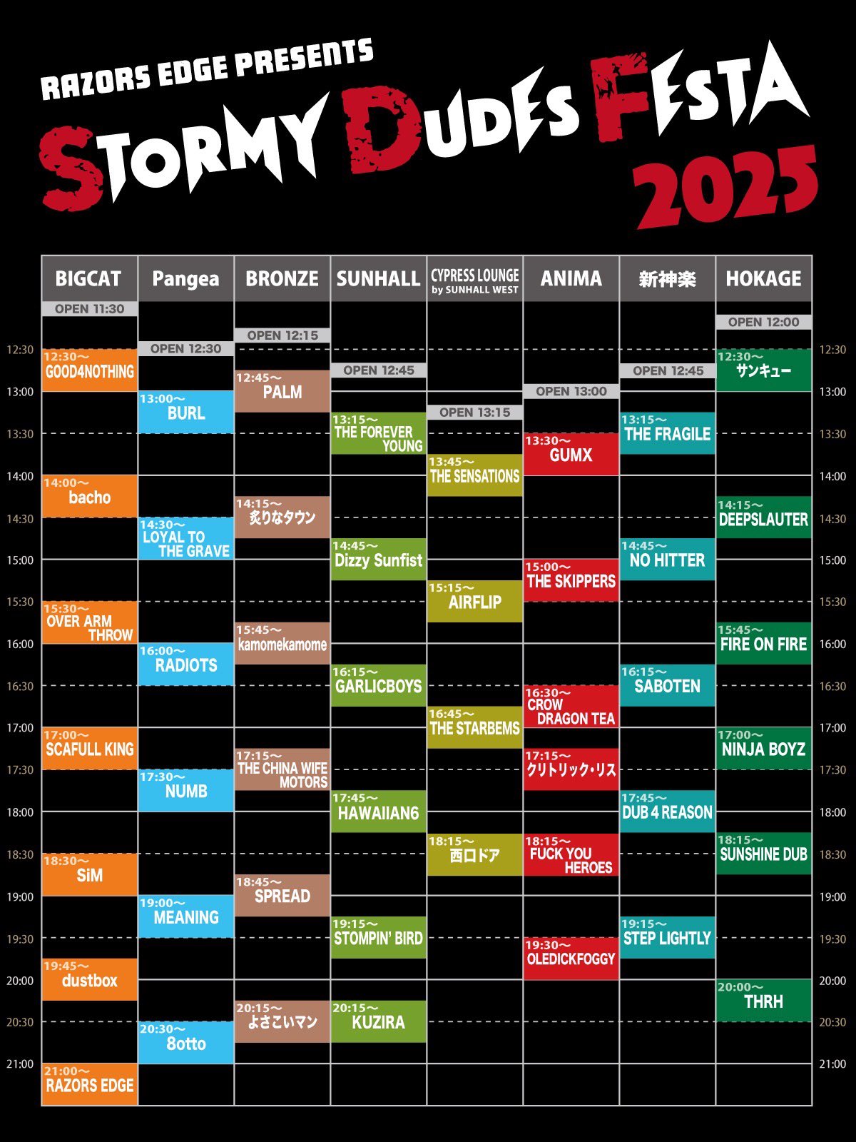 会場:BIGCAT / SUNHALL / ANIMA / Pangea / BRONZE / HOKAGE / SINKAGURA(7会場サーキットイベント)