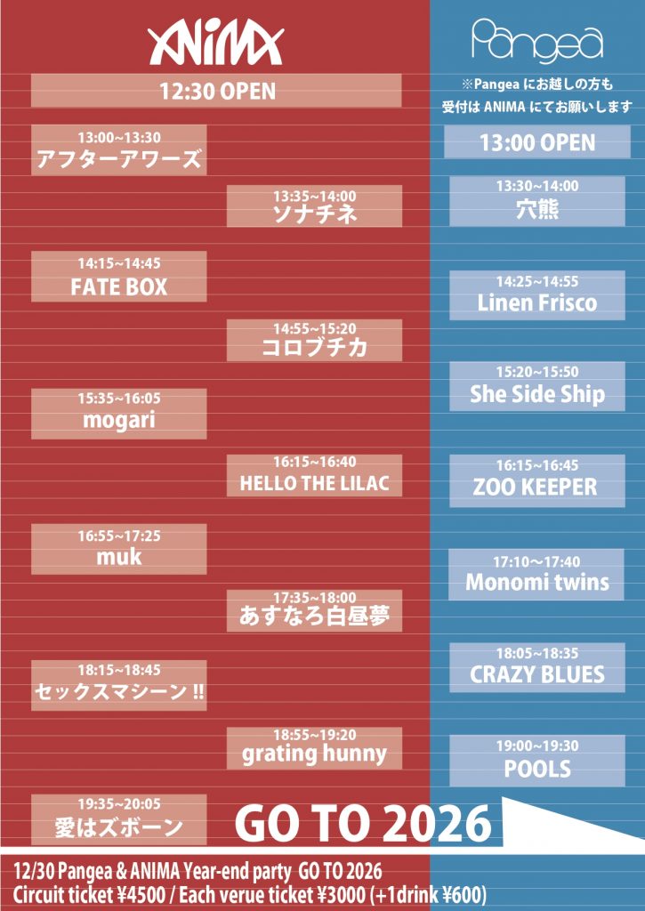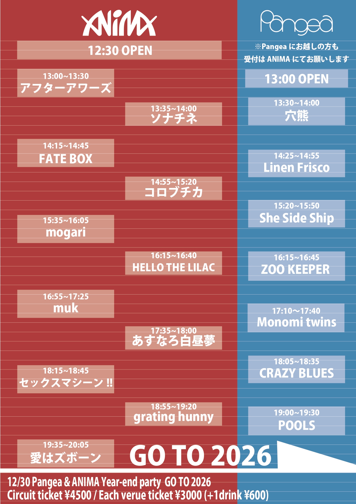 受付:Live House ANIMA (※Pangeaチケットの方も一度ANIMAにて受付を済ませてからお越しください)