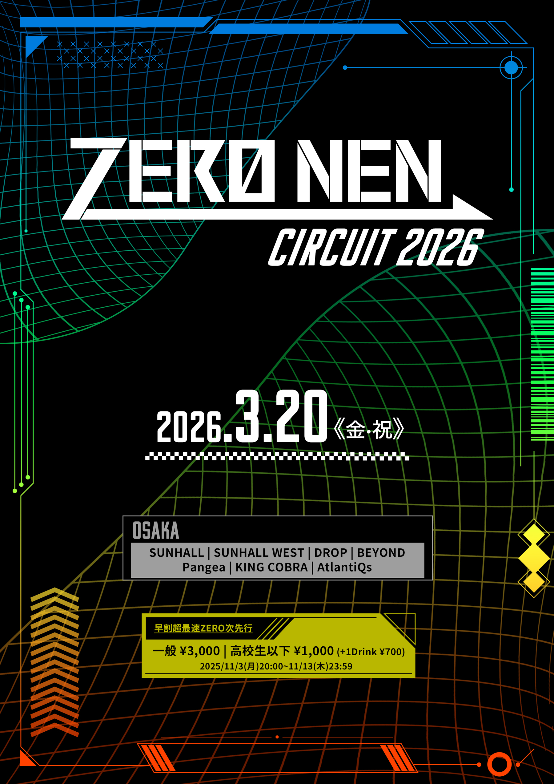 会場:SUNHALL / SUNHALLWEST / DROP / BEYOND / Pangea / KING COBRA / AtlantiQs (心斎橋ライブハウス7会場)