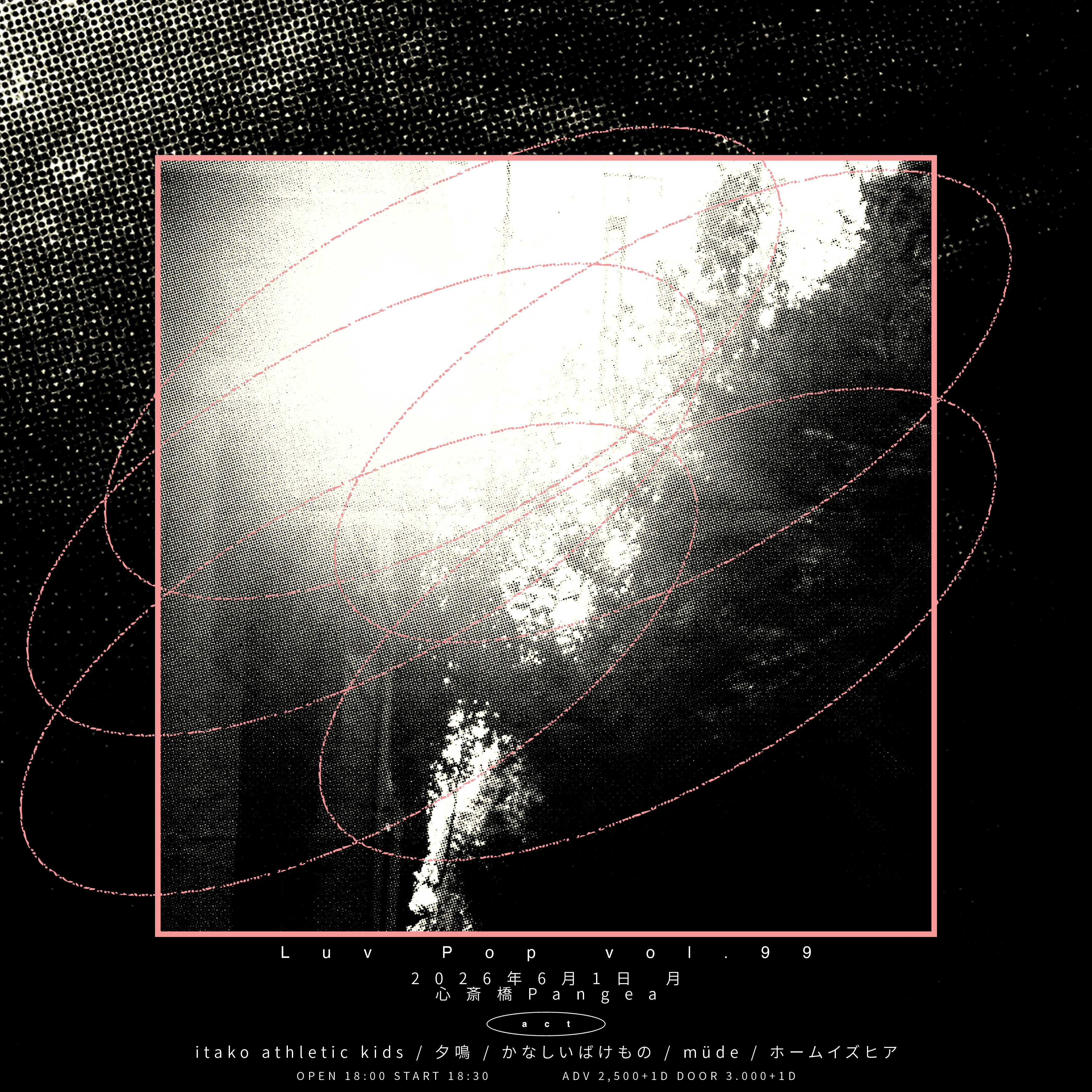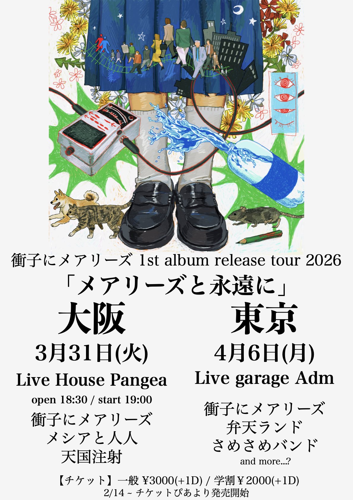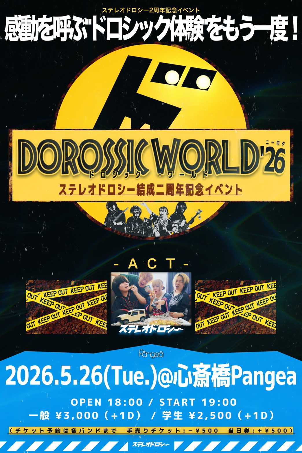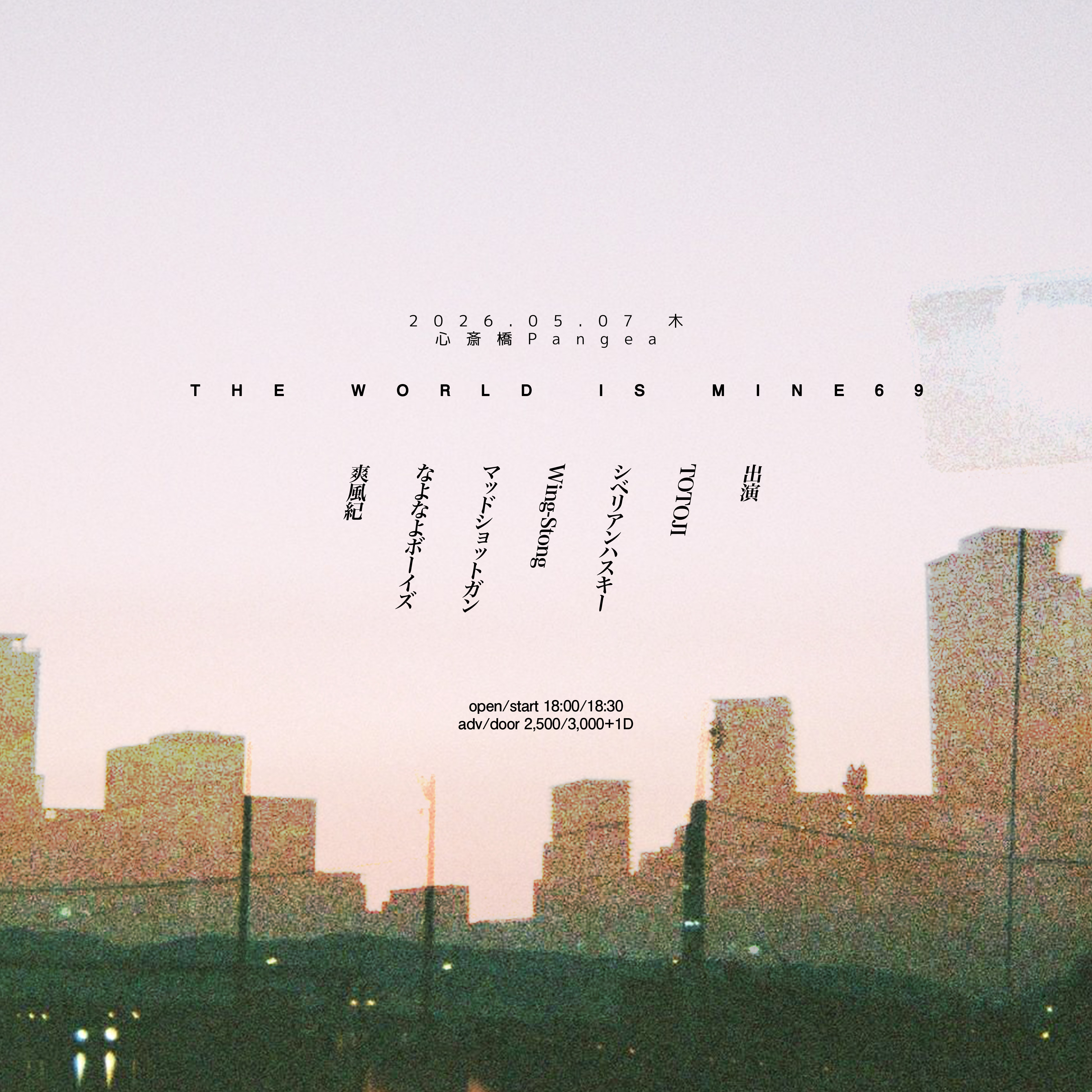 OPEN 11:00 START 12:00 PRICE 一般 ¥6500 学割 ¥4500 小学生以下入場無料(但し保護者同伴に限る) 【+1drink(¥700)】