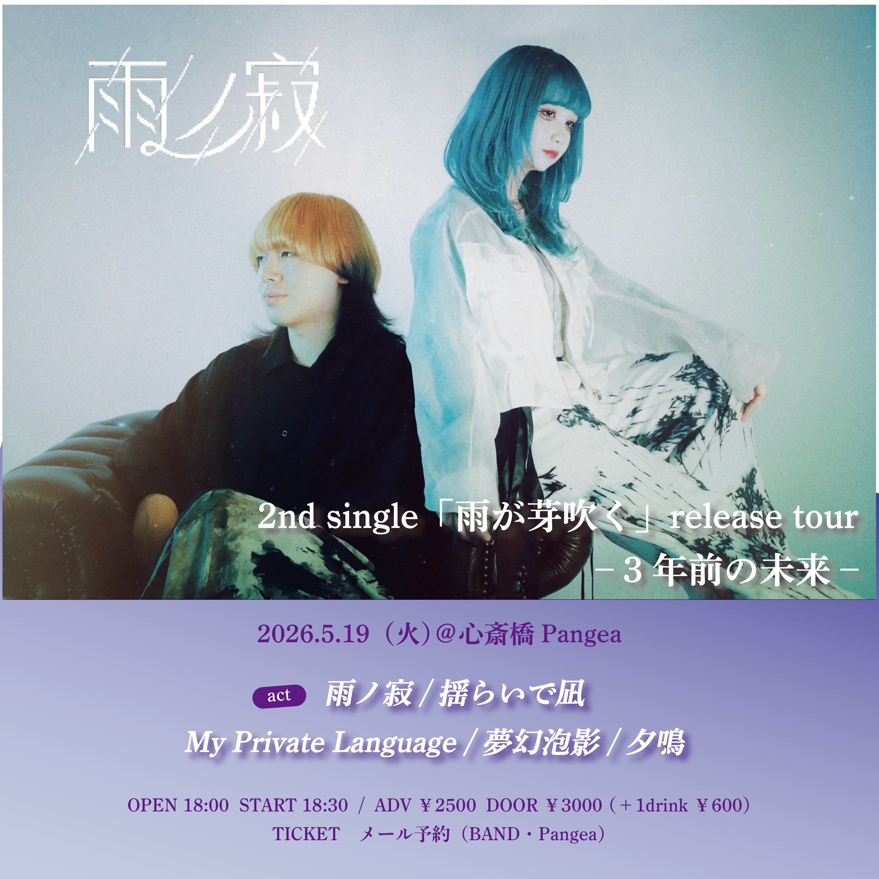 OPEN 11:30 START 12:30 PRICE ADV ¥5000 / U22 ¥3000 【+1drink(¥600)】